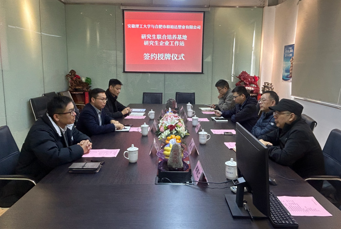 2025年11月20日上午,合肥市和裕达塑业有限公司与安徽理工大学研究生联合培养基地、研究生企业工作站签约暨揭牌仪式在和裕达隆重举行。安徽理工大学材...
